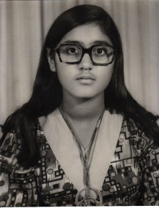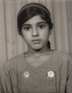 Here’s Puchi, or Chanel No. 5. She changed the spelling of her nickname from Pouchi to Puchi many years ago. I think she got her nickname when she was the youngest child and my mother affectionately called her Puchra which I think means tail since she was on the tail end of the kids. As she got older she became Pouchi, now Puchi. She’s four years older than me, born in August 1963 so she would have been nine years old when this photo was taken. Puchi and I were named by my mother. I think the rest of my siblings were named by my grandmother, my father’s mother. I was always grateful that my mother named us since our names seemed a bit more contemporary than those chosen for my other siblings. All of us share the same middle name, Afzal, to signify that we are our father’s children, a common practice in Pakistan.