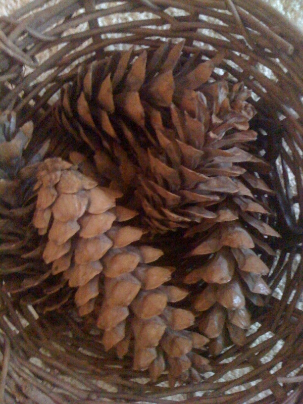 “Well that sounds like a good idea,” I said. “I’m going to collect some pine cones too.”