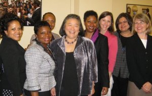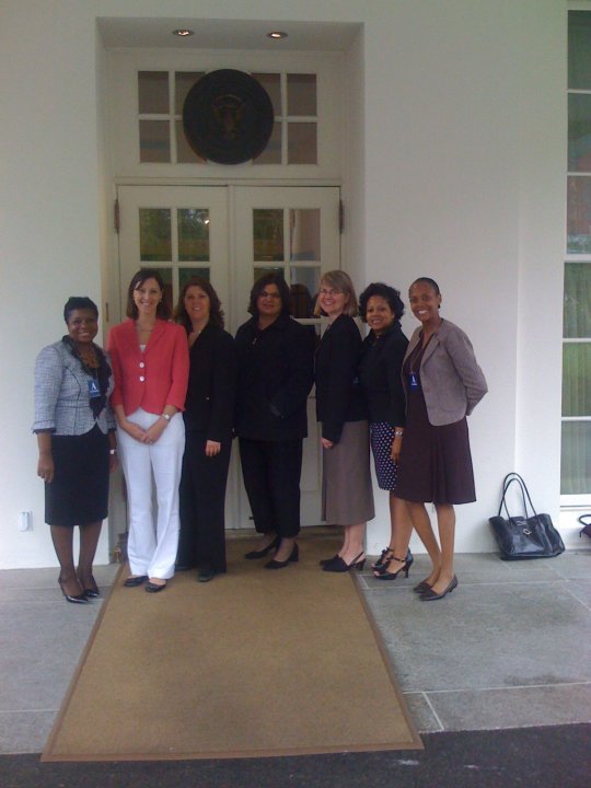 With Tina Tchen at the White House Council on Women and Girls. From left, Shante, Ruby, Shaune, Tina Tchen, Shelley, Jennifer, me, and Ami.